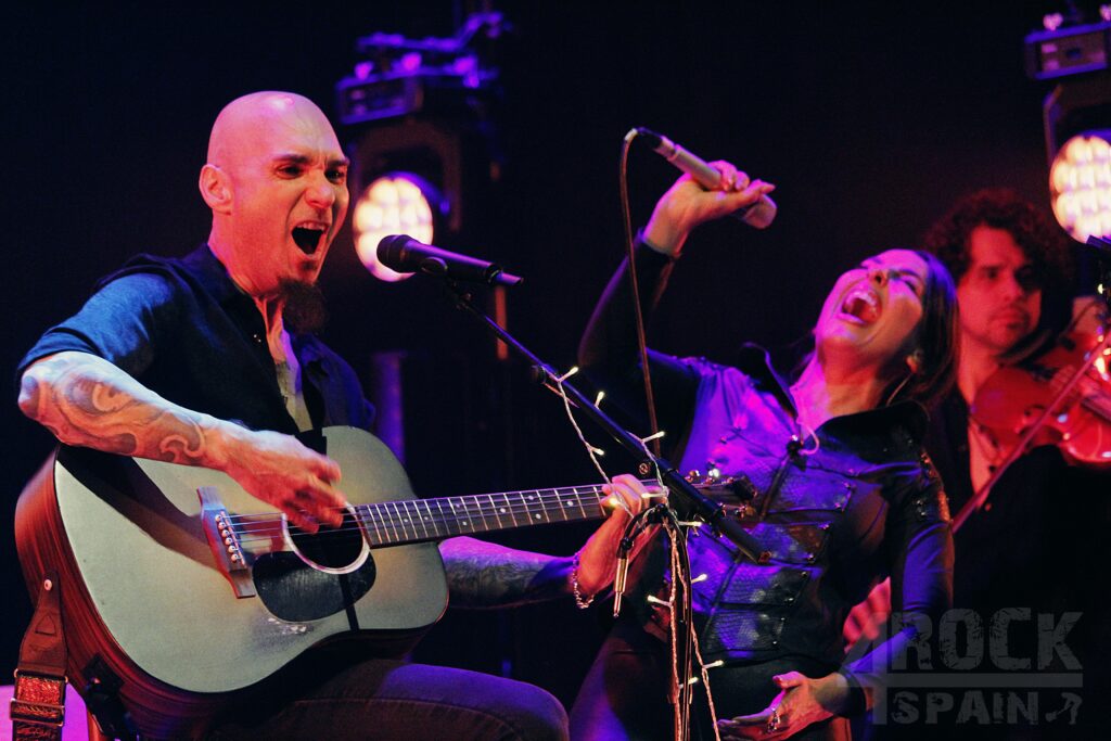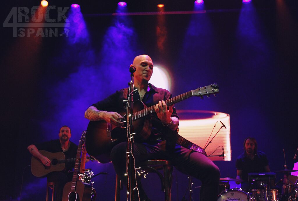 «Papel Mojado», «Arrepentido» y «Eclipse» nos llevaron al ecuador de una actuación soberbia donde tan importante son las notas interpretadas como lo silencios, que por norma general fueron respetados por el respetable, valga la redundacia. Volviendo a «Solitud» nos deleitamos con la interpretación de «La Luna Me Sabe A Poco» de Marea y de «Sábanas Vacías», el que pasa por ser su primer single en solitario. Uno de los últimos clásicos de la primera etapa de Sôber es «El Hombre de Hielo», y le dieron la vuelta de tuerca que precisaba para sonar en una noche como esta, dándole un toque casi humorístico con un final aflamencado en la voz de Carlos que arrancó aplausos y alguna que otra carcajada. Aquí salió del escenario para tomar un respiro y dejó el protagonismo a Raúl Peronas que interpretó, tan solo acompañado de su teclado, un precioso tema de su propio proyecto musical Flores del Infierno titulado «Un Final Mejor». Finalizando este, apareció sobre las tablas Charly López para hacer lo propio con «Gritarle Al Mar» de su banda Bon Vivant. Un bonito gesto por parte de Carlos Escobedo dando visibilidad a estos grandes artistas que si bien aquí cumplen con la función de arropar las canciones de otro, ellos también tienen las suyas propias y luchan por darlas a conocer en un panorama tan saturado como el actual.