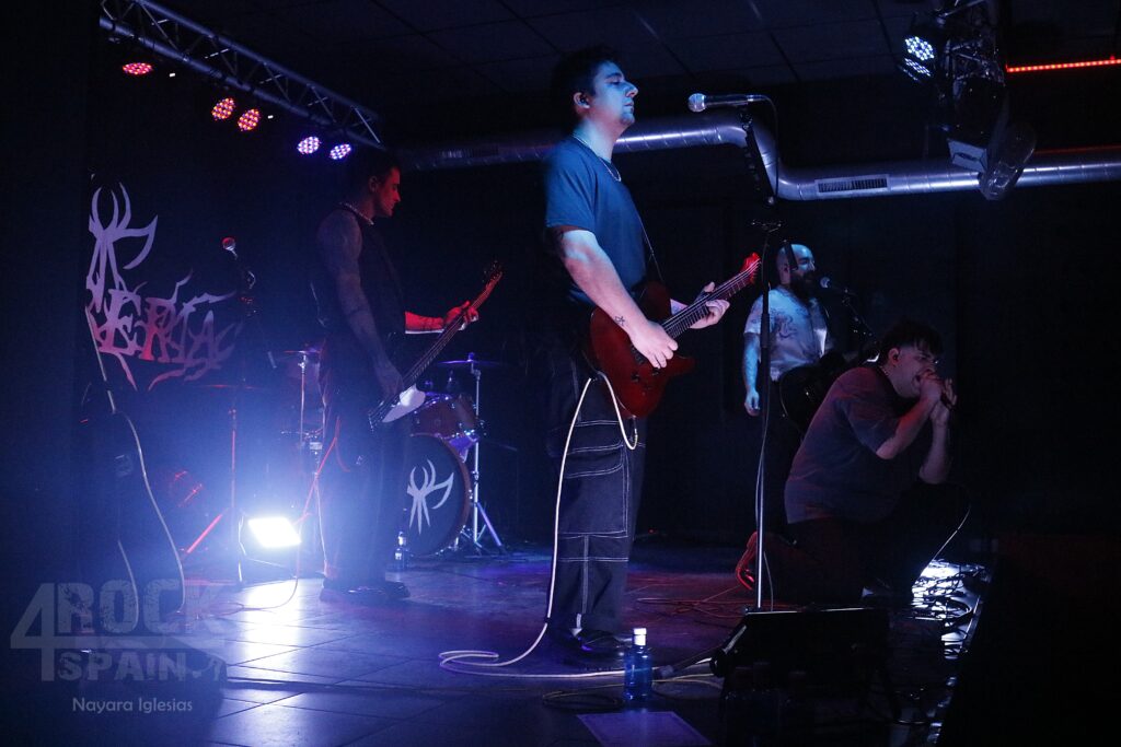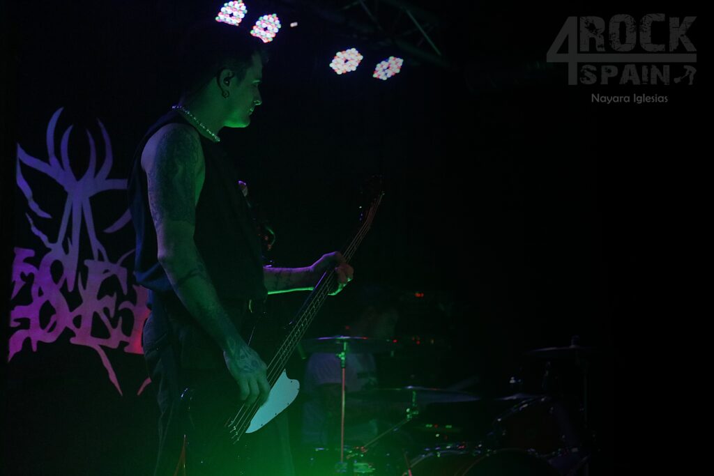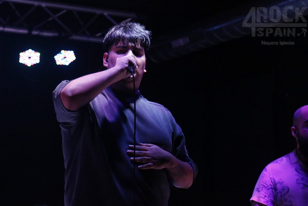 El concierto continuó sin apenas interrupciones entre canciones. «El dolor» fue recibida por una primera fila totalmente entregada, con un estribillo pegadizo coreado con fuerza que dio paso de nuevo a la intimidad de «Forma final». Extremadamente personal, es una faca directa al corazón; un encierro interior que desemboca en catarsis con la explosión instrumental, tanto es así que a Mario se le rompió una cuerda de la guitarra, problema que solucionó rápidamente mientras Víctor presentaba a la banda y adelantaba que el siguiente tema sería «Throne», conocida canción de Bring Me The Horizon. El público completamente entregado se sucedía en bailes y pogos animados por la banda que continuaron en «Miedo y fuego», marcada por guitarras con gran peso y una batería contundente que marcaba el ritmo prácticamente agresivo, reflejo de una banda con ganas de ser escuchada y que demuestra, canción tras canción, que merece serlo. En la misma línea de guitarras y bajo con gran peso tocaron «Umbral», tema en el que colabora en el disco Diego Teksuo, uno de los productores del álbum.